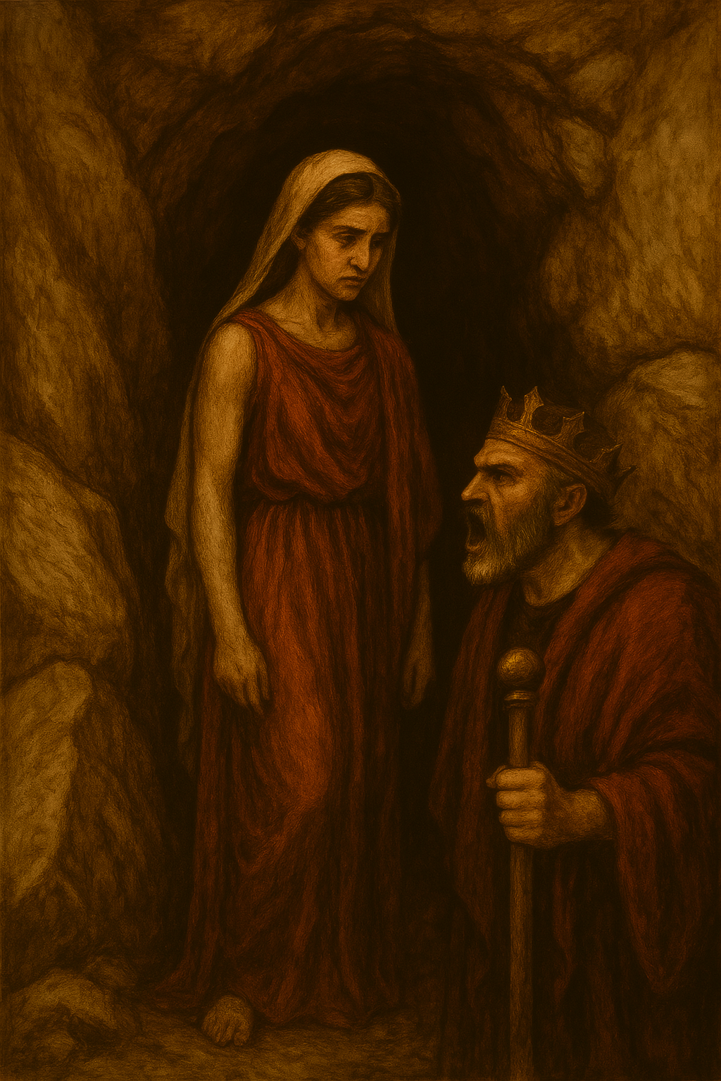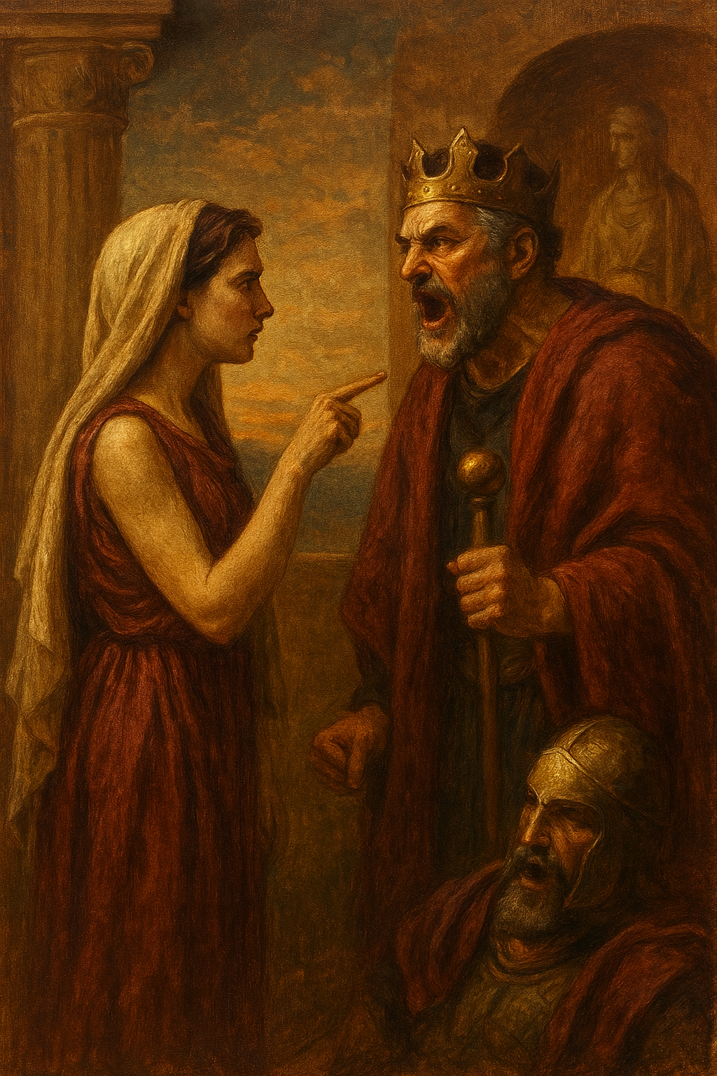 A wise old oracle, Tiresias, also warns Creon that he must bury Polyneices and free Antigone, or the gods will punish him.