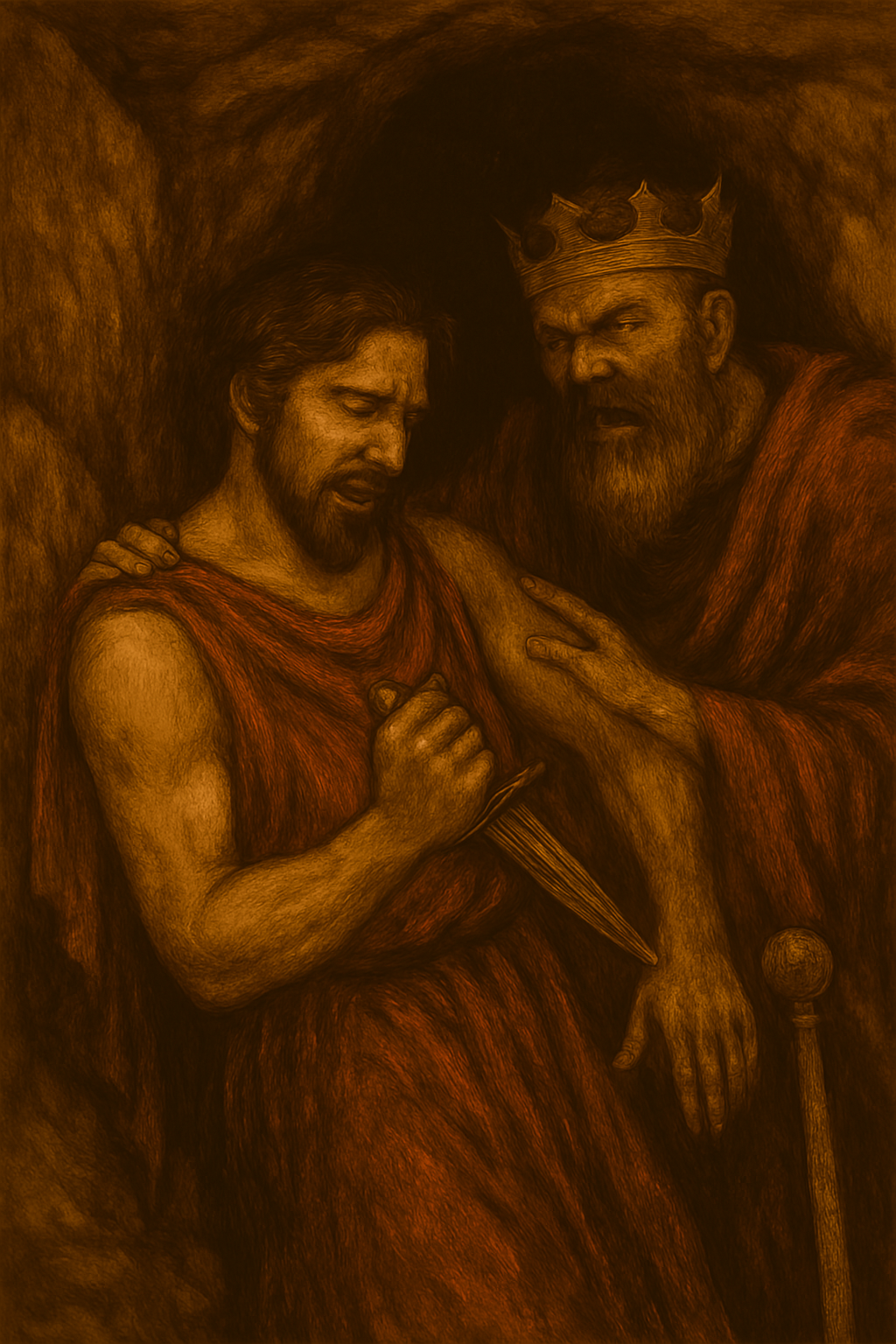 Creon’s son, Haemon, who is engaged to Antigone, begs his father to change his mind.