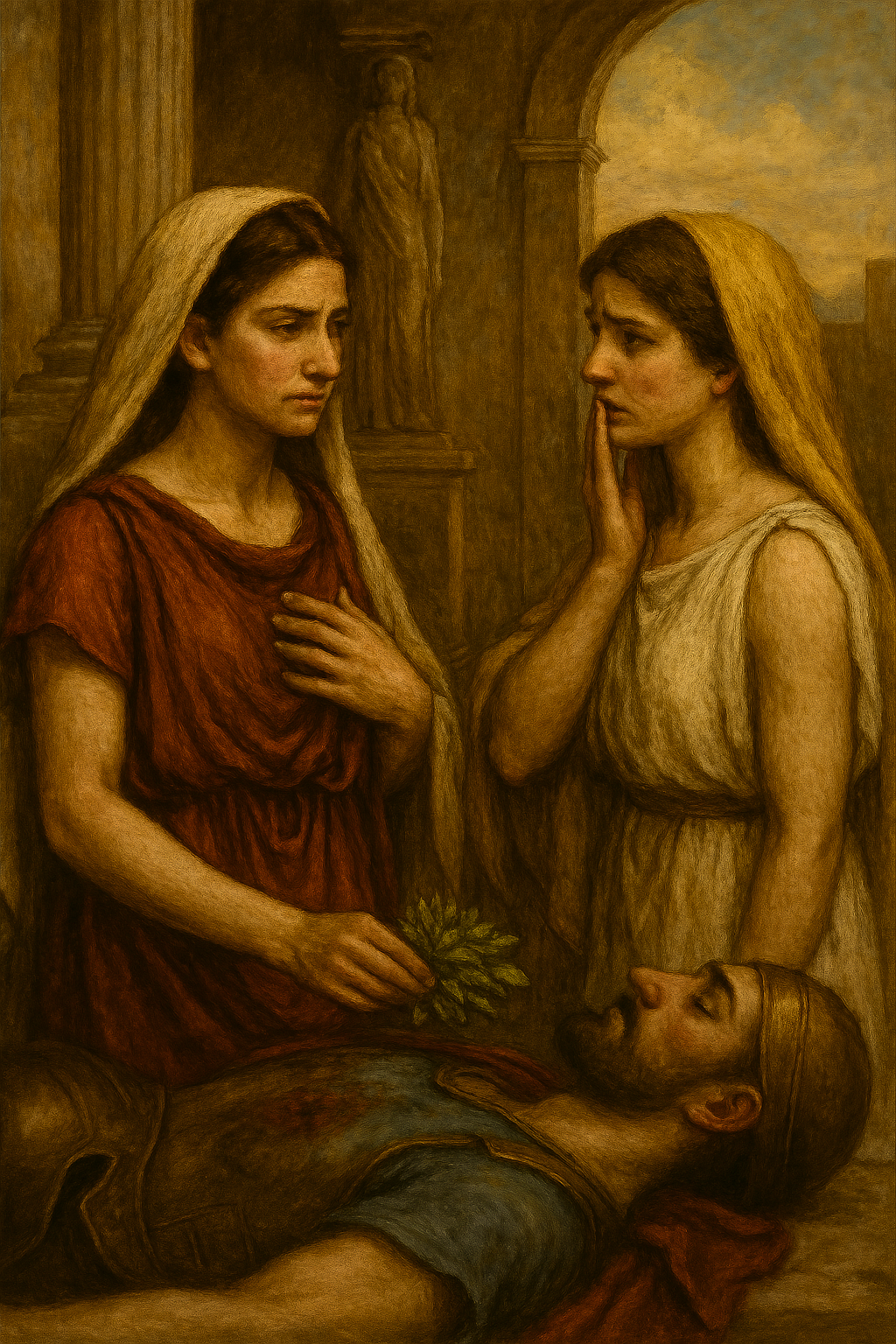 Before she dies, Antigone says goodbye, believing she did the right thing for her family and the gods.