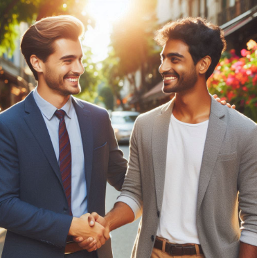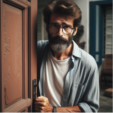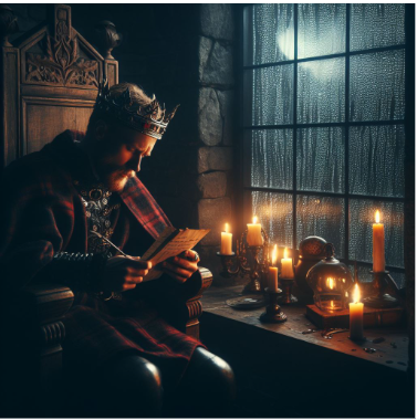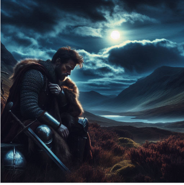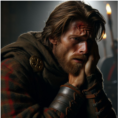 One day he feels thirsty. He is not at home. He is outside. He goes to a lake. He kneels on the ground. He leans over the water in the lake. He sees his own reflection in the water.